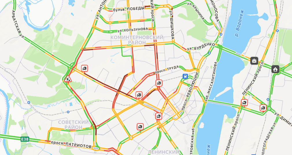 Заторы парализовали Московский проспект и соседние улицы — Плехановскую, Донбасскую, 45-й Стрелковой Дивизии.