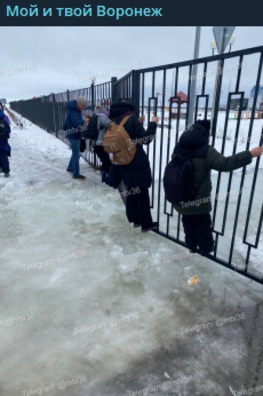 «Ногу ребёнка засосало!» О снежном месиве у гимназии сообщили воронежцы