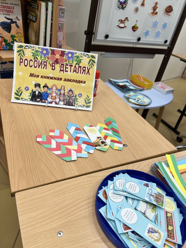 Программа началась с творческого задания. На мастер-классе ожил «Ковёр дружбы»: участники украшали его аутентичными национальными узорами — от хохломы до орнаментов народов Севера. А на мастер-классе «Россия в деталях», дети и взрослые с увлечением мастерили разноцветные книжные закладки в цветах флагов разных республик.