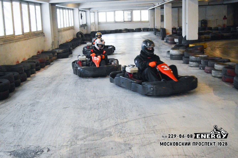 Почувствовать себя настоящим гонщиком можно, не выезжая за пределы города! В Воронеже для этого есть специальное место — картинг-клуб ENERGY. Большой крытый картодром (площадь трека — 3,5 тыс. м², протяжённость круга — 470 м), трасса с особым покрытием для идеального сцепления и управляемости — настоящая находка для любителей скорости, экстрима и драйва. Устройте семейные или дружеские гонки, корпоративные соревнования на болидах разной мощности. Для экстремального свидания в ENERGY есть двухместный карт.