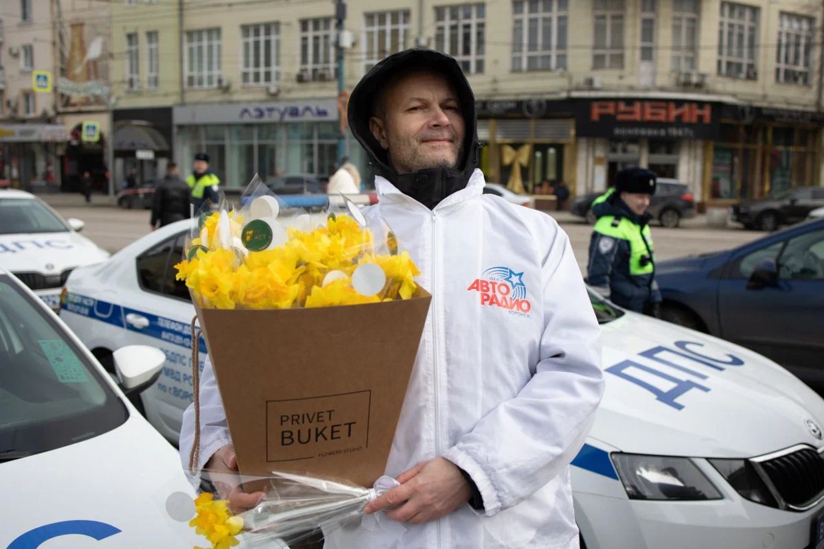 Команда «Авторадио», щедро вручая прекрасным дамам Воронежа нежные букеты нарциссов от цветочной студии «Привет, букет!» и ярких тюльпанов от цветочных мастерских «Белый Фикус» и «TA Flowers», воссоздала позитивную весеннюю атмосферу, напомнив о важности солидарности среди участников транспортного движения.