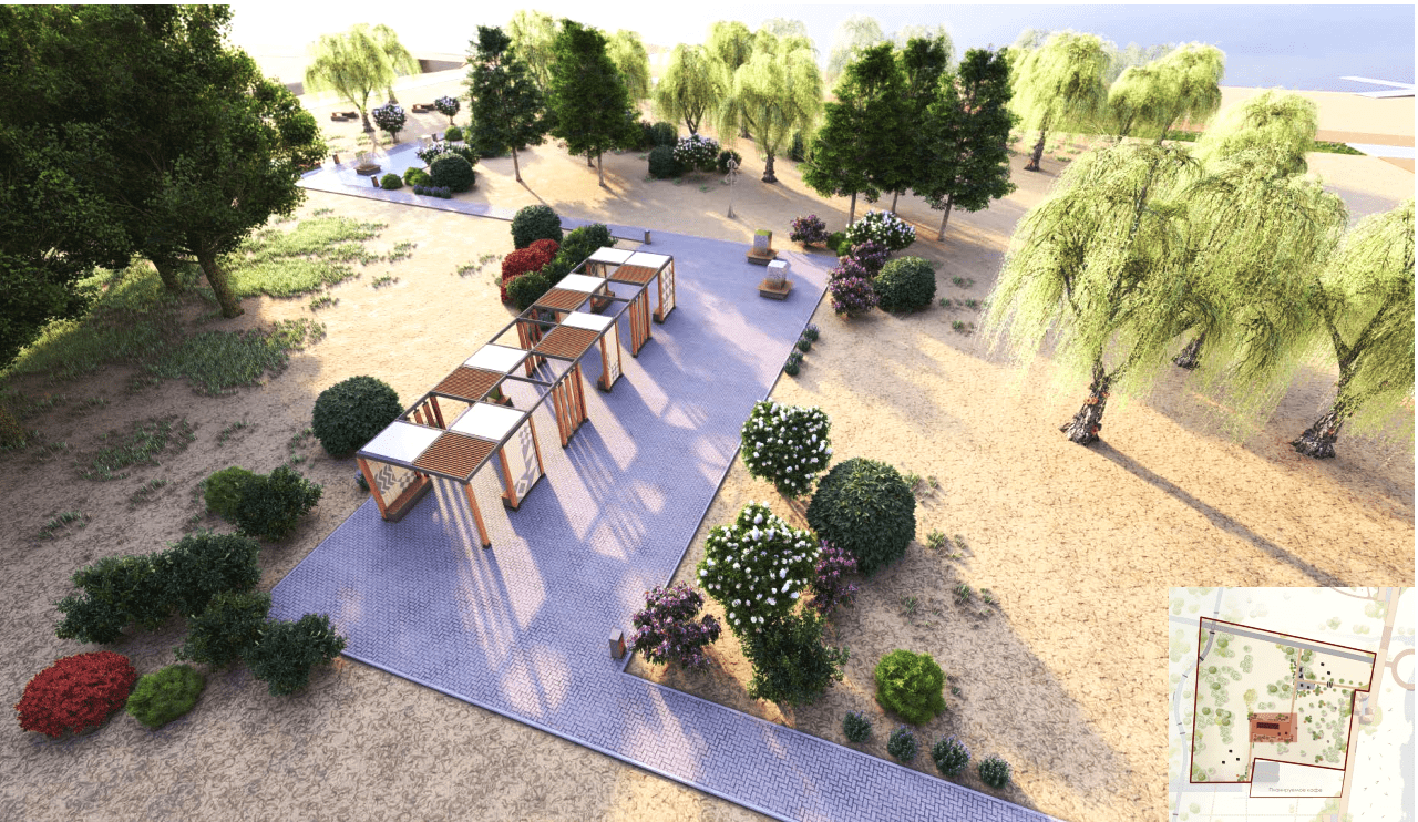 Породный состав выбирали, исходя из окружающей флоры. Предпочтение отдали парковой сосне, плакучей иве и пирамидальному тополю. А чтобы зеленой кроны долго ждать не пришлось, предприниматели приобрели уже взрослые деревья в местном Подгоренском питомнике.