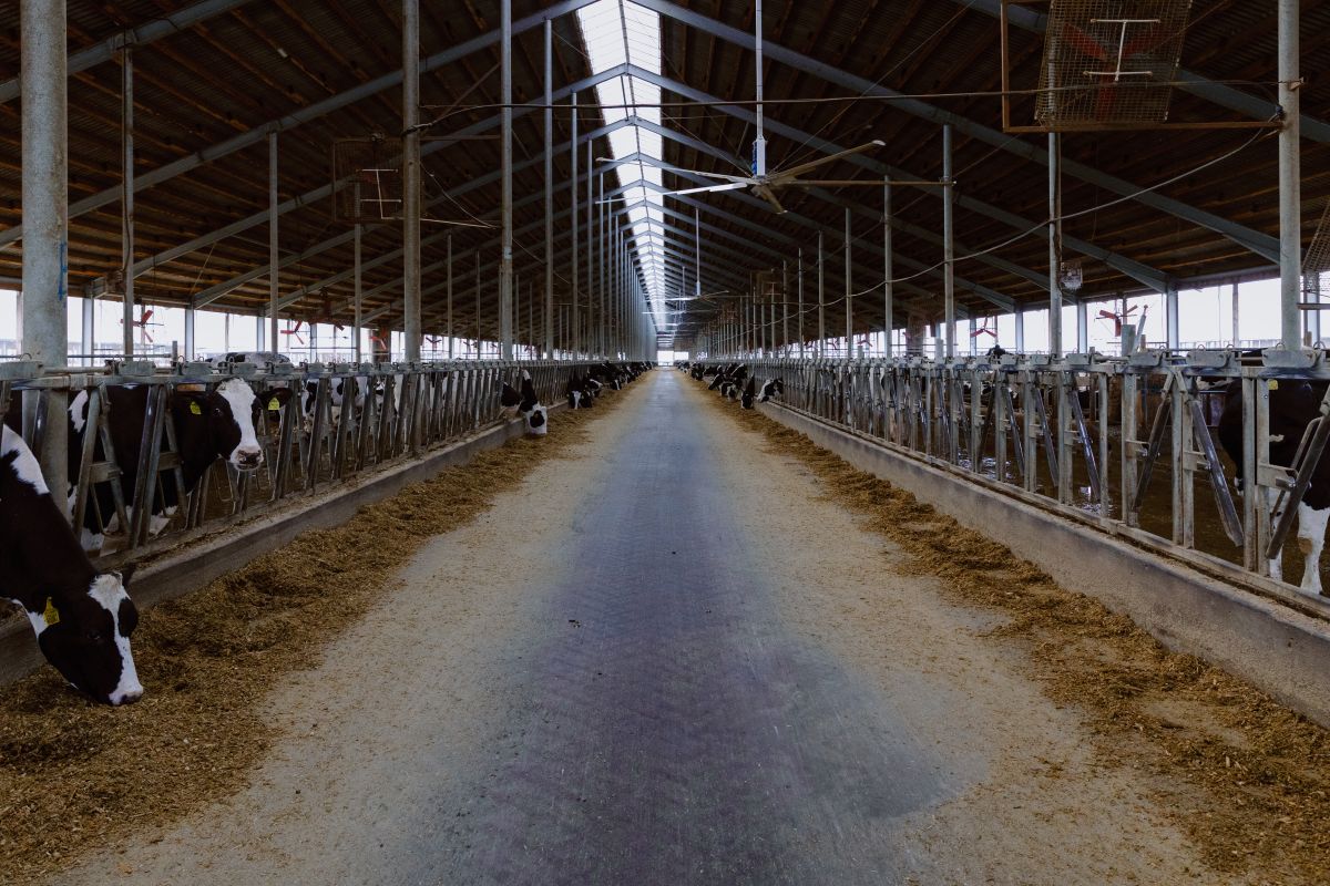 Кажется, что коровы и телята едят прямо с дороги, а не из корыта, но это сделано для удобства обслуживания: специальная техника, как большой пылесос, убирает остатки корма и навоз, отправляя их в так называемую «лагуну», то есть компостную яму, откуда растениеводы затем будут черпать удобрение тоже с помощью техники.