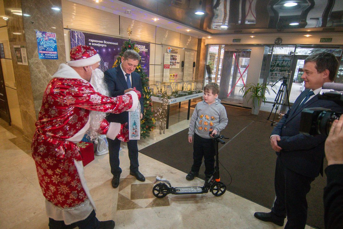 Впереди Новый год, а значит, мечты должны сбываться. А начнется воплощение в жизнь желаний Кирилла с долгожданного подарка — в канун Нового года заместитель председателя Воронежской городской Думы, генеральный директор АО «СЗ «ДСК» Андрей Соболев организовал встречу Кирилла с Дедом Морозом, который вручил мальчику самокат.
