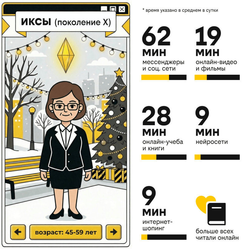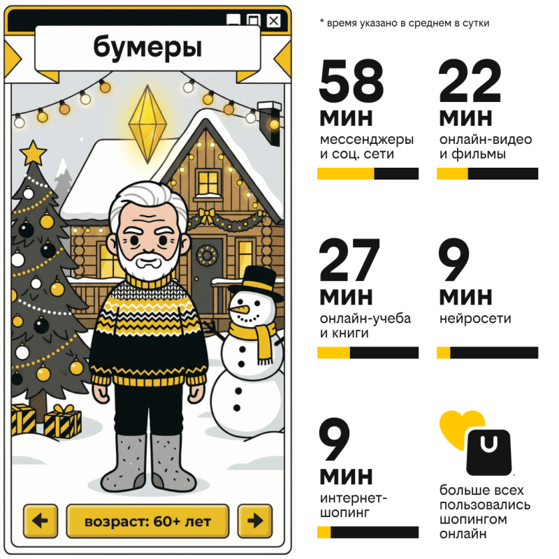 На новогодних праздниках бумеры чаще других занимались онлайн-образованием, зумеры смотрели видео, а миллениалы общались с ИИ