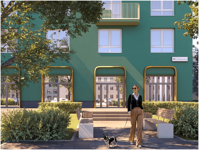Для комфорта жителей в «Циолковском» предусмотрена безбарьерная среда с входными группами на уровне земли, единый сквозной вестибюль, который связывает внутренний двор и сквер, а также подземный паркинг, кладовые и колясочная. На первом этаже разместятся магазины и бытовые сервисы.