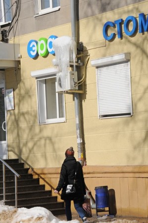 От падающих сосулек в Воронеже страдают кондиционеры и вывески магазинов