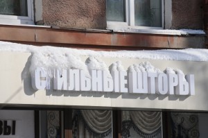 Пострадали от сосулек и владельцы магазинов, аптек и прочих организаций, вывески которых украшают фасады зданий. Корреспонденты «МОЁ! Online» в ходе поездок по городу встретили массу вывесок, в которых из-за сбитых букв названия организаций менялись самым причудливым образом. Так, например, на одной из улиц мы встретили салон «сильных штор», с вывески которого отвалилась буква «Т».