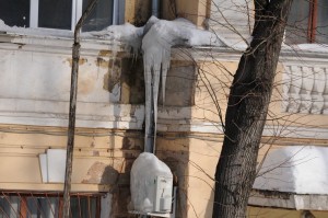 Досталось также кондиционерам. Наружные блоки на фасадах некоторых зданий после сбивания сосулек висят боком.