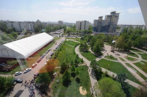 Откровенно говоря, вид с колеса обозрения открывается не особенно зрелищный (что можно увидеть — смотрите на нашем видео). В наивысшей точке хорошо просматриваются, пожалуй, только геометрическая планировка парка и строящиеся дома в округе. Ни леса, ни даже крыш домов с него не рассмотреть, ведь многие здания вокруг парка гораздо выше колеса обозрения.