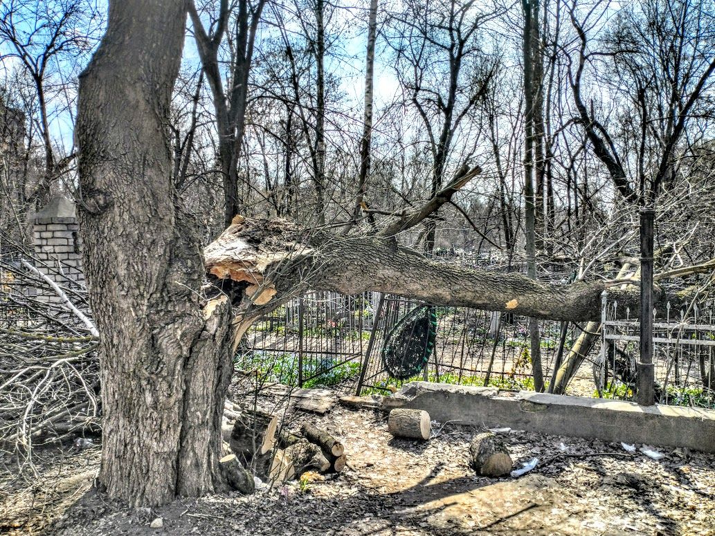 Упавшее дерево покорёжило могилы на Коминтерновском кладбище в Воронеже