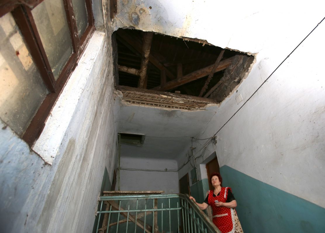 — Пошла в аптеку купить лекарство от давления. Там была очередь, простояла довольно долго. Возвращаясь и подходя к дому услышала грохот, напоминающий взрыв. Из подъезда вырвались клубы чёрной пыли, я через секунду превратилась в «чёрного человека», — рассказывает женщина. — Зашла в подъезд и ахнула. Пробравшись по шлаку, камням и кирпичам к своей квартире на первом этаже, увидела у двери огромный камень размером с ведро и множество кирпичей.