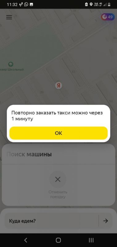 Также читатели сообщили, что во время заказа такси сервис уведомляет пользователей о том, что повторно заказать машину можно будет через минуту.