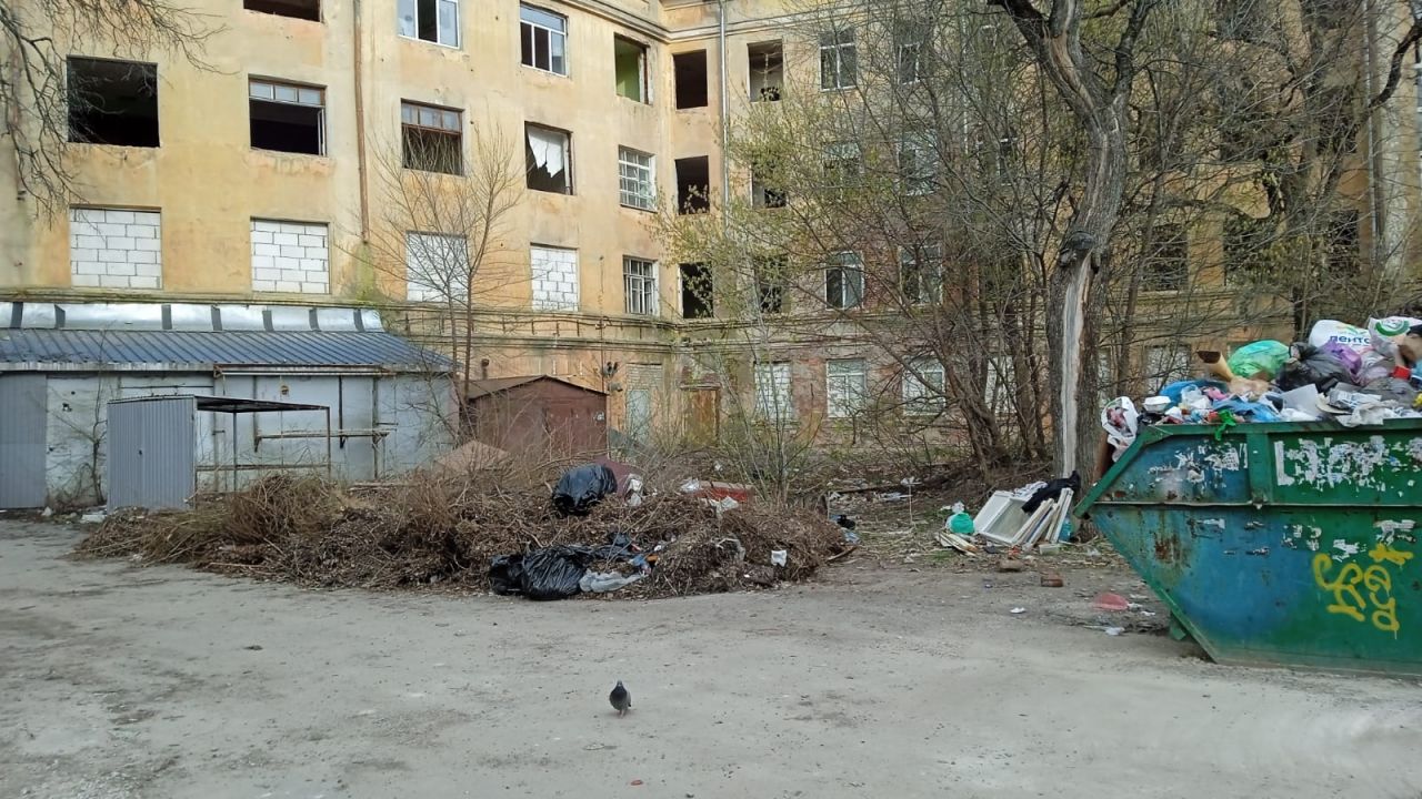 Напомним, дом на Депутатской, 7 — часть ансамбля из двух полукруглых домов постройки 30-х годов прошлого века. Оба здания состоят на охране как объекты культурного наследия. Один из двух домов (№ 11) известен своим барельефом с «парящей девочкой». Его в прошлом году отреставрировали, в нем живут люди. А дом № 7 расселён. Когда здание опустело, в его стенах начали орудовать мародёры, выносившие металл, двери и окна. Спустя полгода власти законсервировали здание — заложили кирпичом оконные и дверные проёмы первого этажа. Поскольку управляющей компании у расселённого объекта культурного наследия нет, во дворе стали скапливаться горы мусора. И это не единственная проблема этого дома. В прошлом году стали поступать сообщения, что с него кусками отваливается штукатурка.