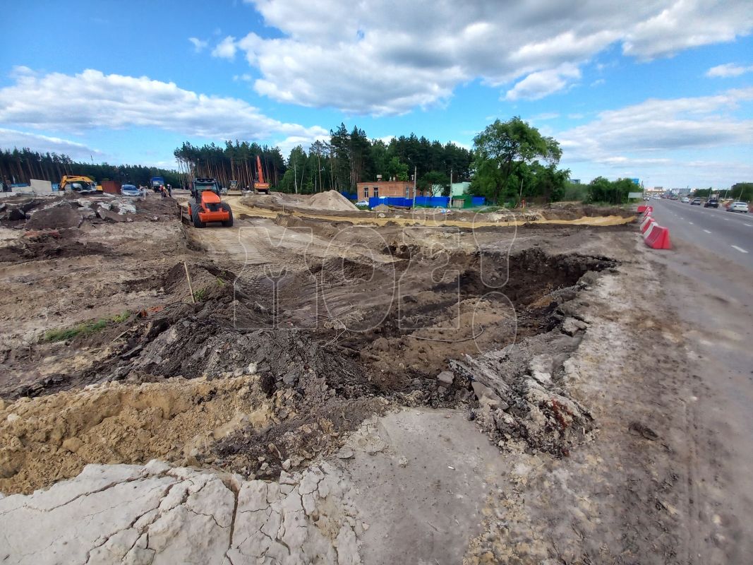 На участке ранее стояло заброшенное здание — последнее из мешавших масштабной стройке. Его снесли в конце мая. Затем рабочие разметили трассу, уложили песок и утрамбовали его, засыпали изоляционный материал, а сегодня, 6 мая, начали отсыпать гравий.