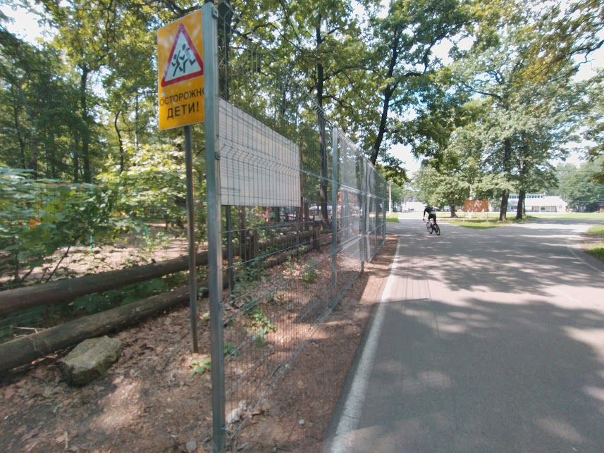Но не беда. Сетчатый забор, как мы уже написали, опоясывает только часть территории. У велороллерных трасс он внезапно обрывается, так что, если вы захотите посидеть в беседке или просто прогуляться по лесным тропам, вам нужно будет всего-навсего сделать небольшой крюк, чтобы обогнуть забор.