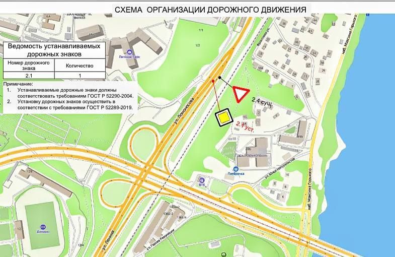 На участке Северного моста по направлению к улице Ломоносова установят знак «Главная дорога».