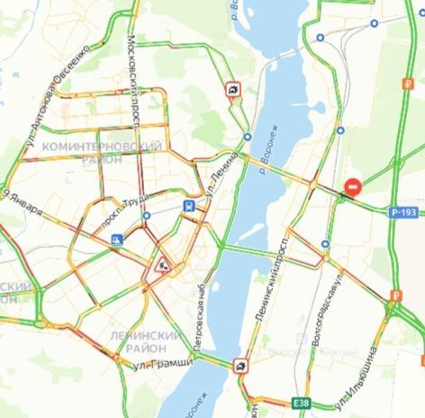 Восьмибалльные пробки вновь затрудняют дорожное движение в Воронеже вечером сегодняшнего понедельника, 16 октября. Информацию о ситуации на дорогах предоставляет сервис «Яндекс. Карты».