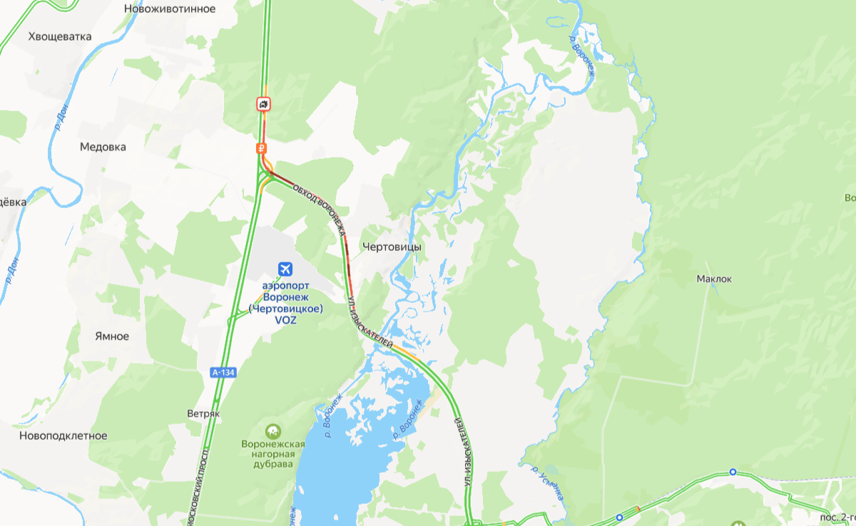 Пробка на выезде из города уже достигла десяти километров и продолжает увеличиваться. Она тянется от улицы Изыскателей в Центральном районе Воронежа и не заканчивается до Борисоглебской церкви.