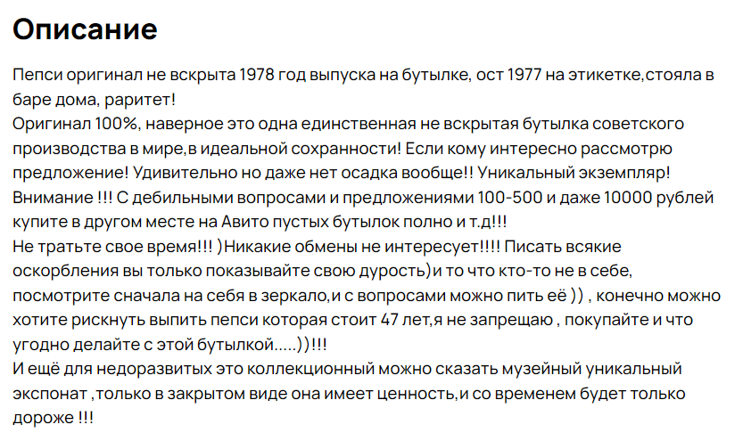 Раритетная газировка появилась на просторах агрегатора объявлений