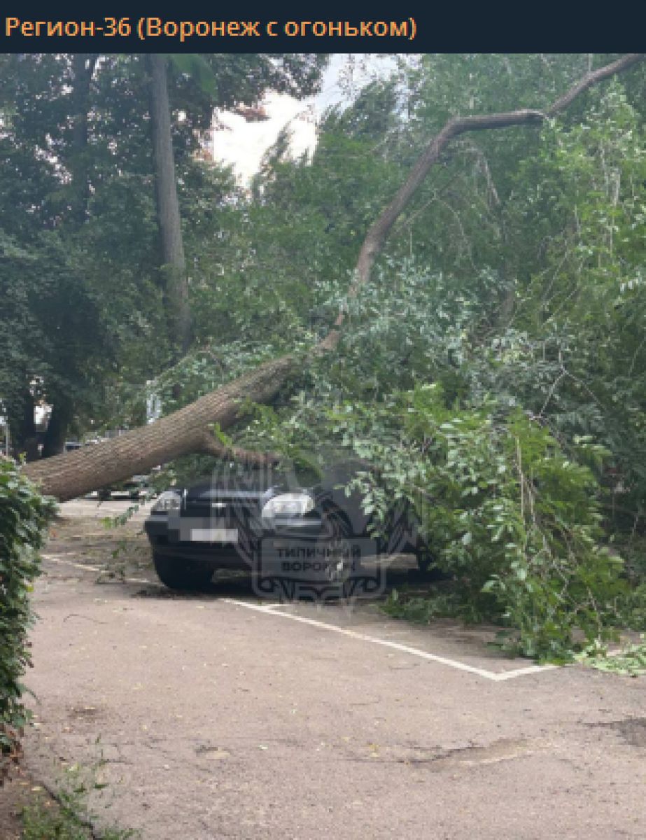 Некоторые деревья приземлились прямо на машины. Так, пострадало авто на улице Фридриха Энгельса. Мощный ствол также перекрыл дорогу во дворе на улице Свободы. Растение упало на провода.
