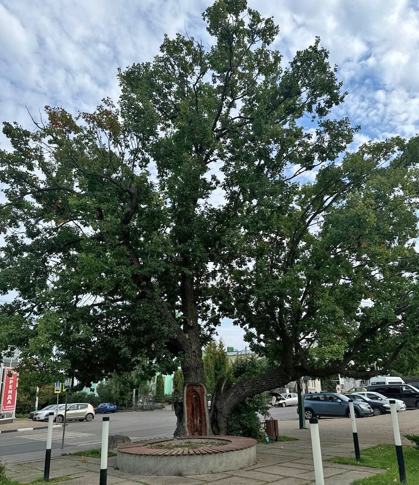На улице 25 Октября стоит великан, чьё положение драматично. Дуб-затворник томится за высоким синим забором частного владения, которое было выкуплено под застройку. Теперь будущее дерева, много лет бывшего немым наблюдателем городской суеты, висит на волоске.