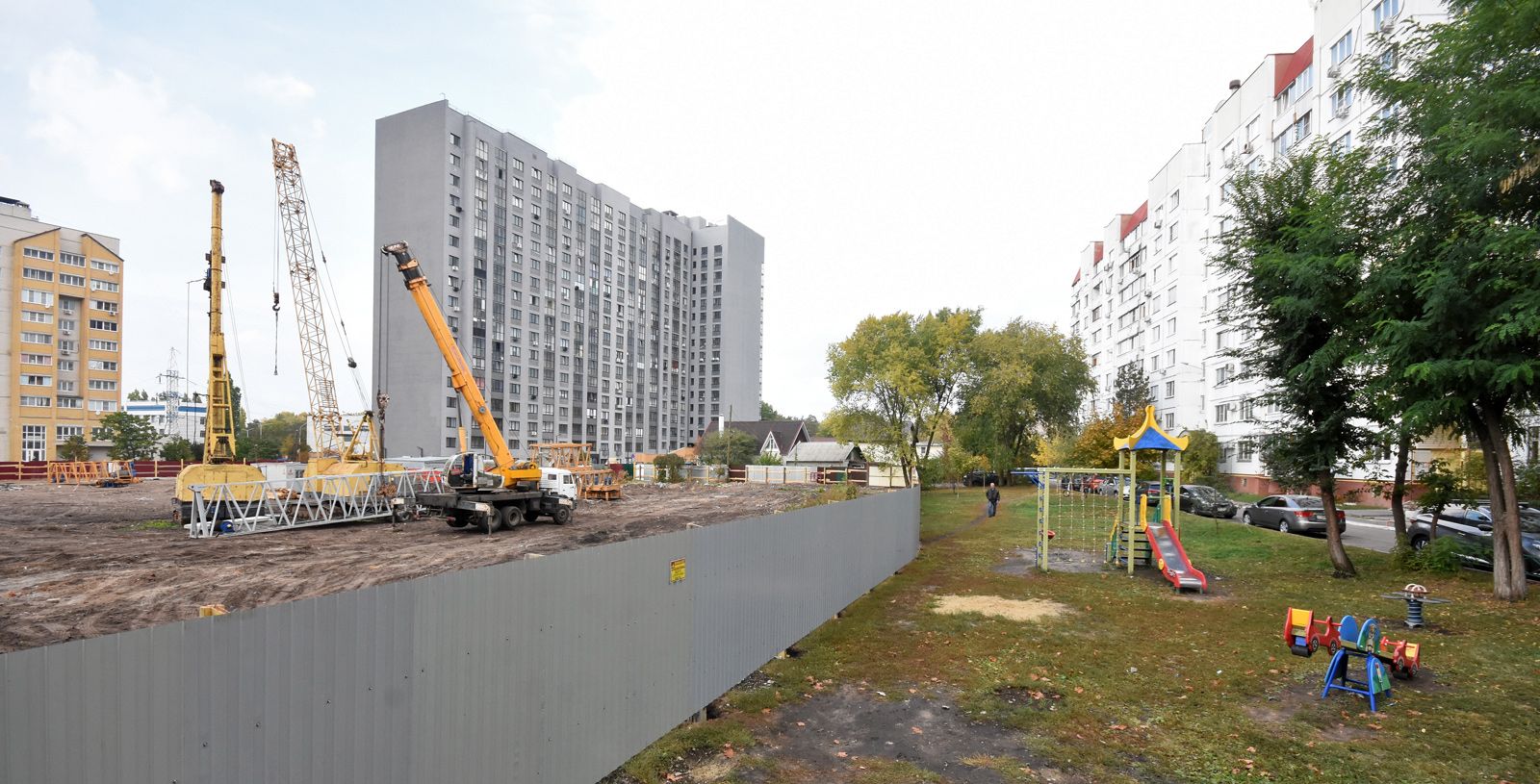 Сама же стройплощадка, огороженная забором, в тот день, кажется, дремала, было впечатление, что на ней нет ни души. И только в конце дня непонятно откуда выползшие рабочие начали монтировать подъёмный кран.