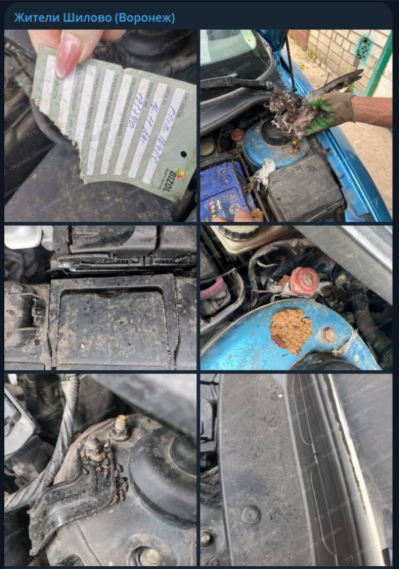 Животные грызут всё, что могут прокусить. Повреждены кожаные накладки на трубах и шлангах под капотом, покусаны пластиковые корпуса двигателя и прочее.