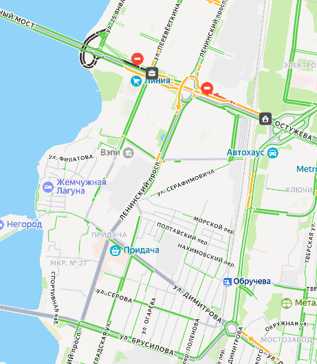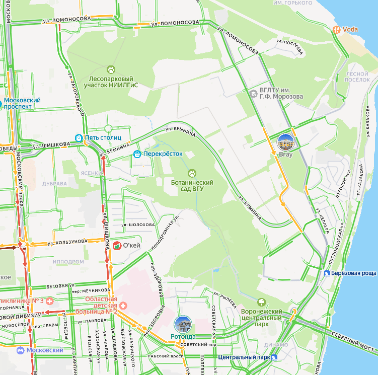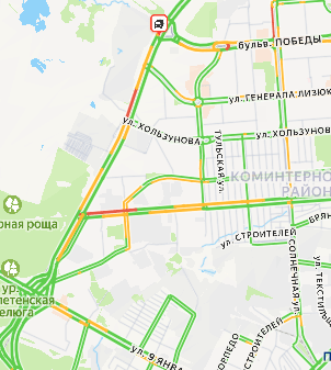 Чуть лучше ситуация на других улицах. Например, попасть центр через Антонова-Овсеенко и 9 Января или же по улице Крынина, Ломоносова и далее по проспекту Революции.