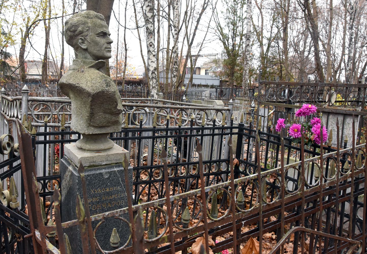 Неподалёку — бюст на могиле другого воронежского художника, Бориса Гончарова (1921 — 1959). Он участник Великой Отечественной войны, был тяжело ранен, попал в плен, совершил побег с товарищами, вернулся в ряды армии рядовым и сражался до Дня Победы. Награждён орденом Красной Звезды. В 1945 — 1949 годы продолжил учёбу в Саратовском художественном училище. После вернулся на родину, в Россошь, устроился в школу учителем черчения и рисования. Участник городских, областных, межобластных, республиканских выставок с 1949 года. В 1954-м переехал в Воронеж. Дома работать он не любил — прошёл с этюдником сотни километров по полям и весям Придонья, за 5 лет написал более 350 работ.