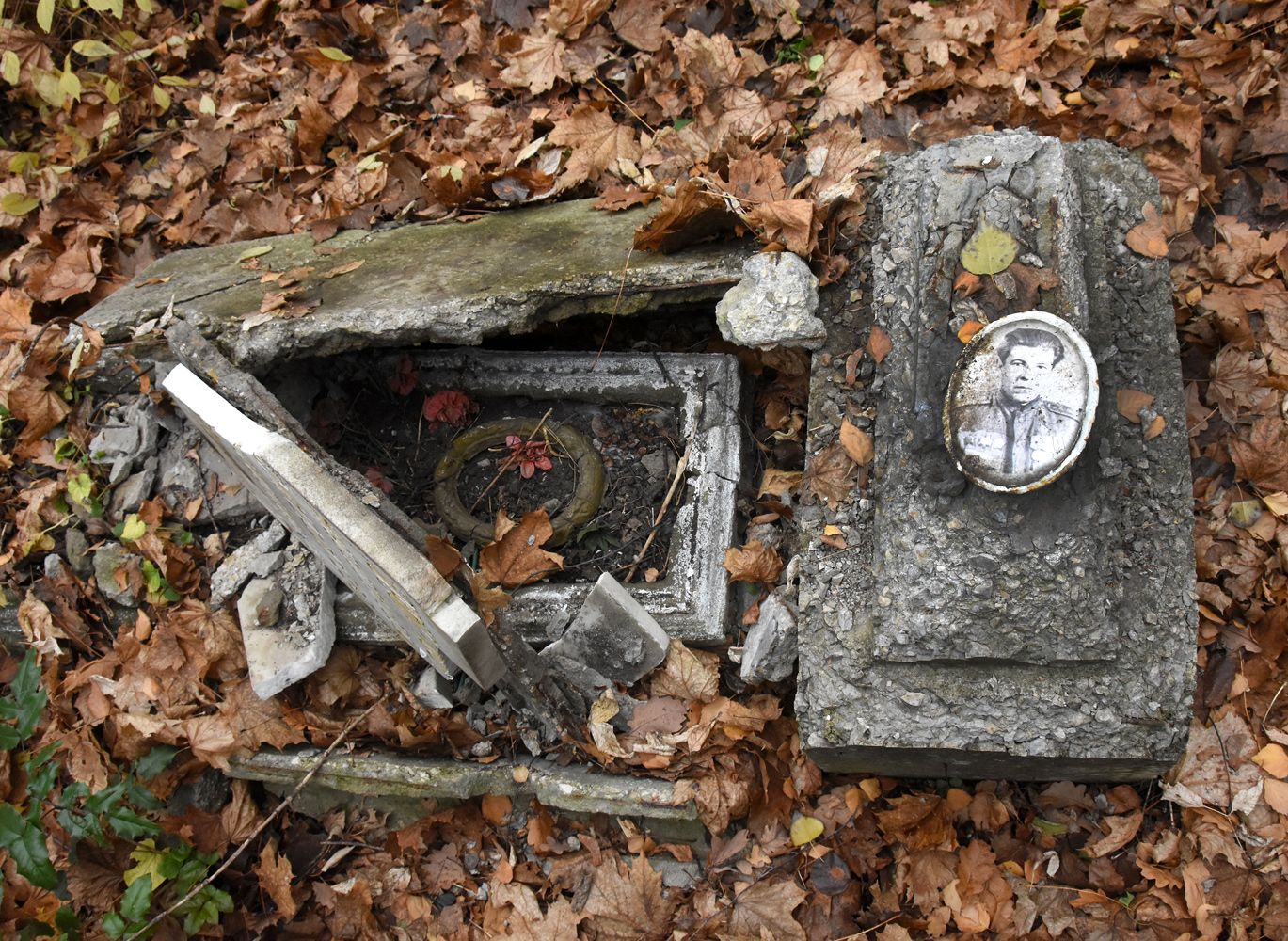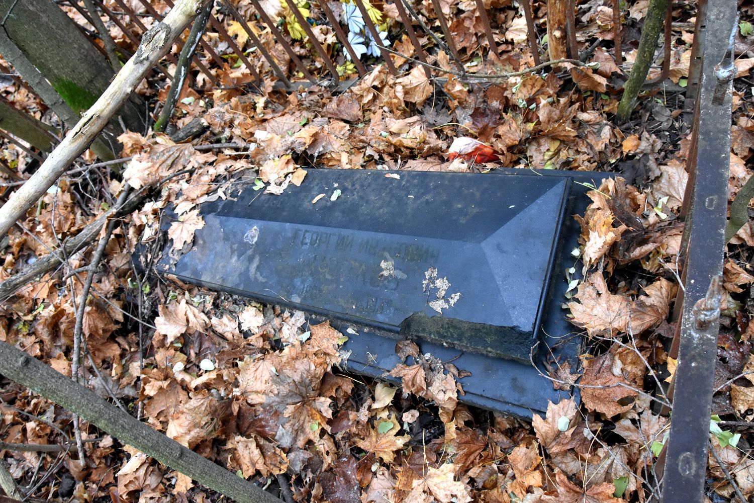 После долгих петляний между надгробиями подходим к могиле с обвалившимся памятником.