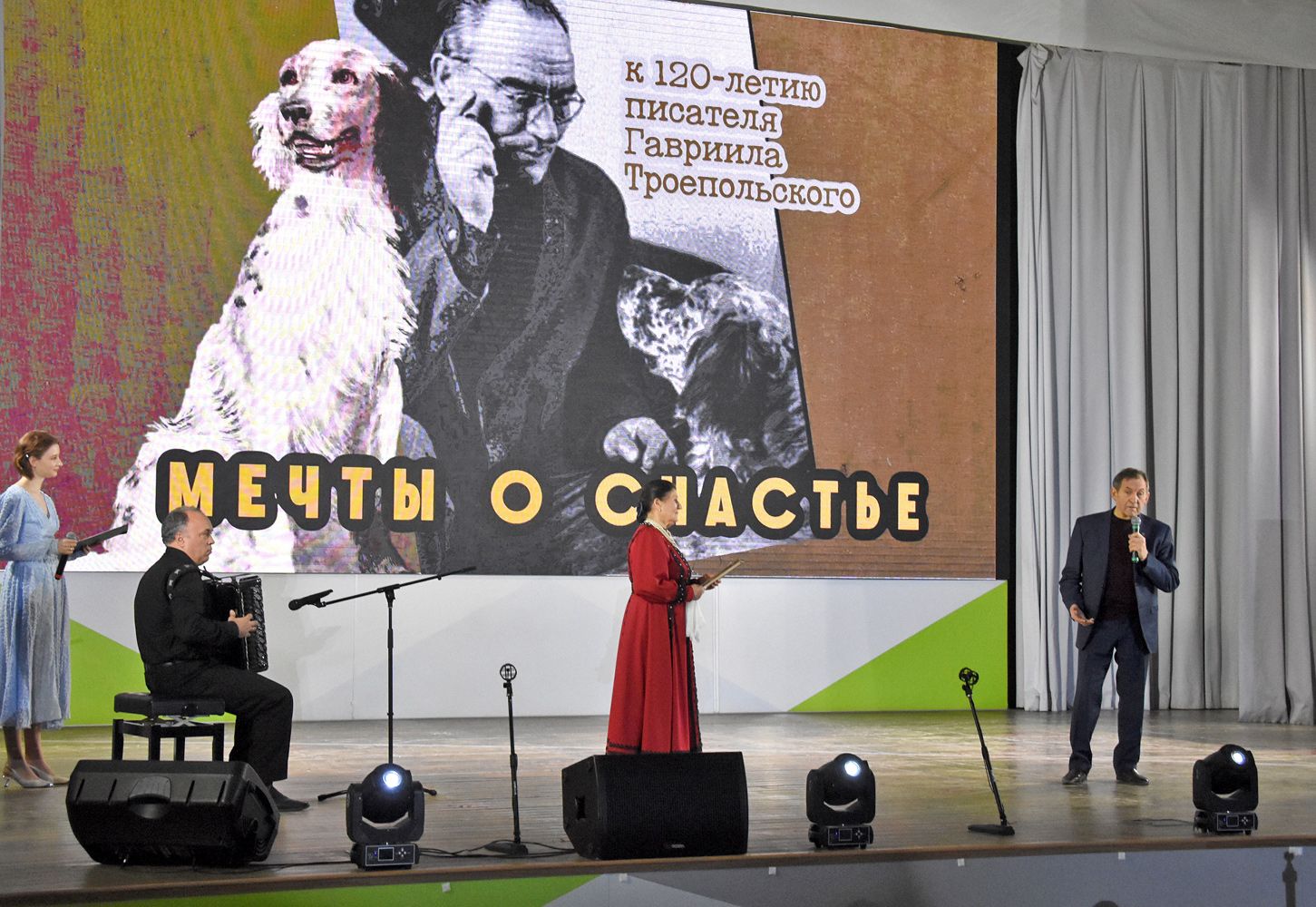 Главными героями почти часового действа, приходившего 10 ноября на сцене бывшей воронежской школы № 102, а с февраля 2025-го — образовательного центра «Траектория», где обучаются более тысячи человек, были не столько «двуногие», сколько четвероногие. И безусловно, много тёплых слов было сказано об авторе «Бима» — в присутствии почти 500 школьников и гостей на сцене прошёл праздник, посвящённый 120-летию со дня рождения писателя Гавриила Троепольского.