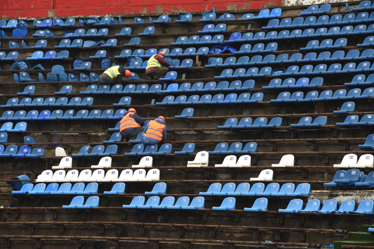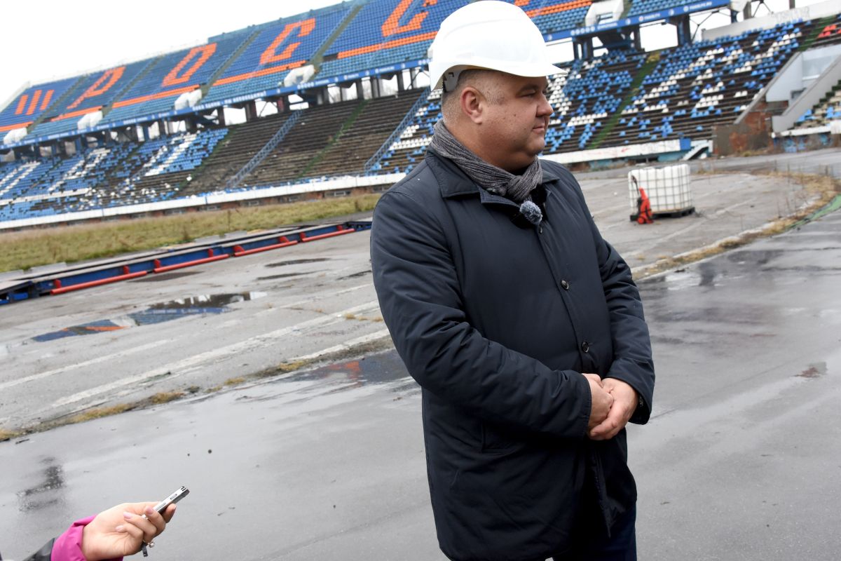 — Здесь мы видим весовой пункт, где будут взвешиваться конструкции из металла и железобетона после их демонтажа. Есть и пункт мойки колёс, чтобы наши самосвалы не разносили грязь по центральным улицам города. Уже начат предварительный демонтаж сидений стадиона, а сам демонтаж стадиона стартует с понедельника, 1 декабря, с его центральной лестницы, примыкающей со стороны улицы Студенческой к Восточной трибуне. Всего в работах будет задействовано до 18 единиц техники, в том числе и специализированный 150-тонный кран для демонтажа осветительных мачт и балок Центральной и Восточной трибуны, находящихся на отметке 27 метров и весящих примерно 20 тонн. Завершить демонтаж предполагается до 15 апреля 2026 года, — отметил Ленчиков.
