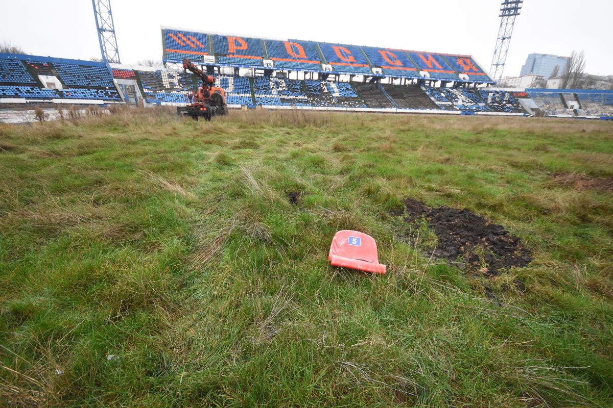 Об этом рассказал заместитель директора по строительству ООО «Стройинжениринг» Владимир Ленчиков, запустивший журналистов внутрь чаши стадиона. Кресла почти все были уже демонтированы, а поле превратилось в прерию с травой в полметра, только фигурок ковбоев на горизонте не хватало. Впрочем, их заменила строительная техника...