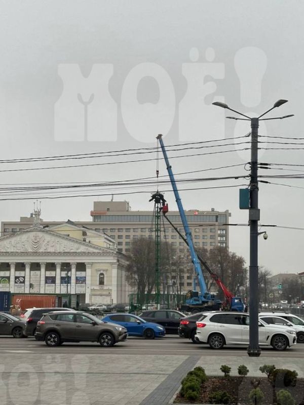 Праздничную ёлку начали собирать на площади Ленина в Воронеже, рассказали «МОЁ!» читатели.