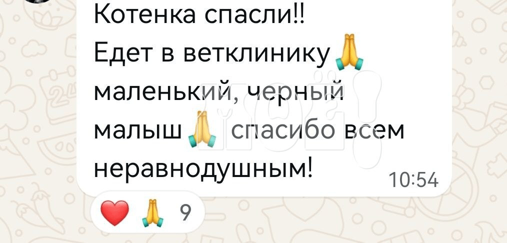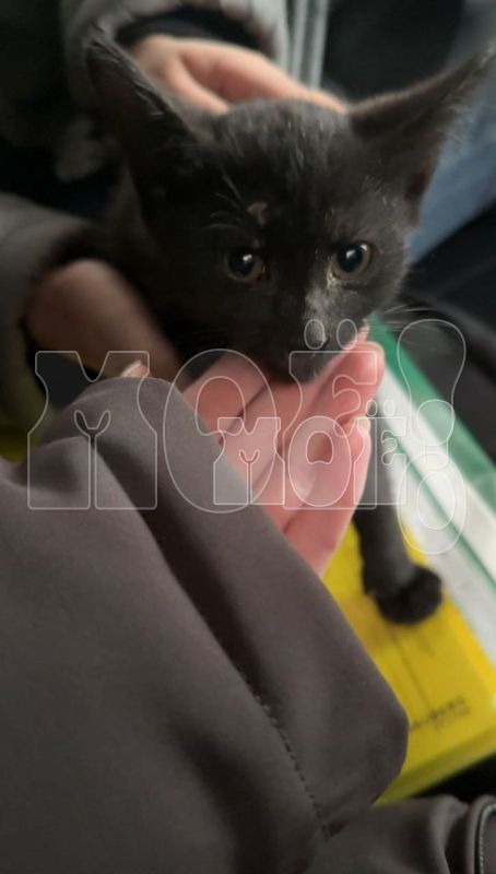 Котёнка спасли сотрудники УК. Сейчас его везут в ветклинику. Для малыша уже нашёлся хозяин.