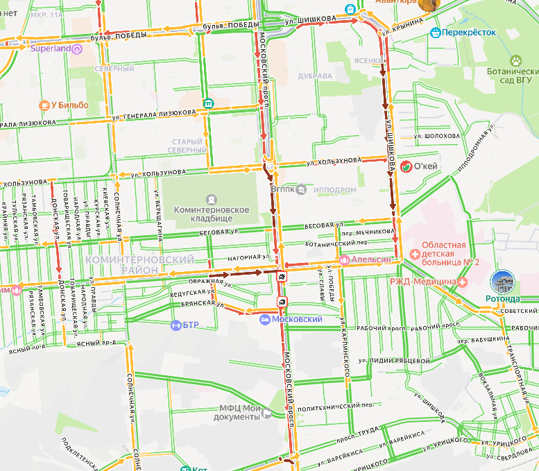 Пробки сковали Московский проспект после снегопада в Воронеже