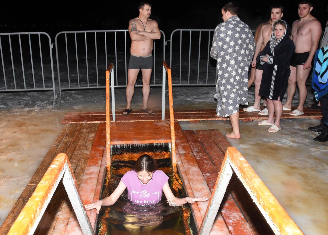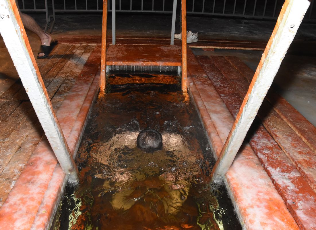 — Пятьдесят три, пятьдесят четыре, — подбадривали они друг друга незадолго до полуночи, а между собой говорили, что в прошлом году тут всего окунулось более 400 человек, а в этом будет, скорее всего, в 3 — 4 раза меньше...