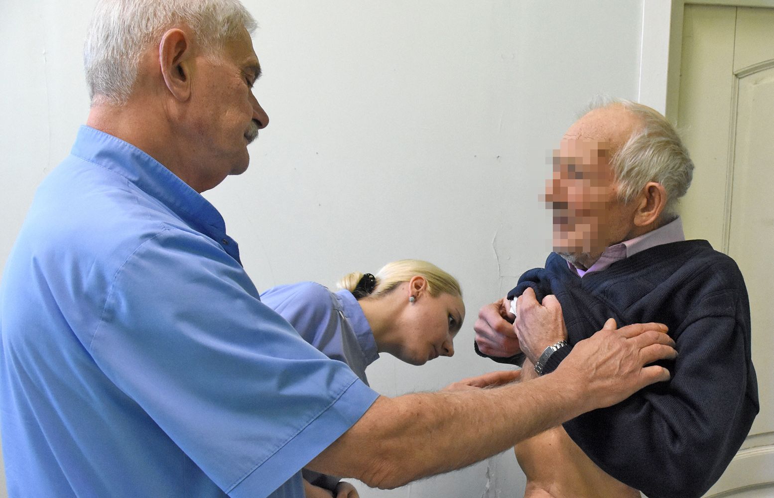 Следующий пациент — 84-летний Юрий Дмитриевич. Он чуть кренится на бок и при каждом шаге болезненно морщится.