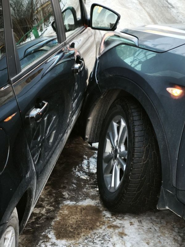 «Водитель, попав в колею на малой скорости, смог выбраться только с помощью сторонних лиц. Из-за гололёда автомобиль повредил другую машину», — пожаловался народный корреспондент.