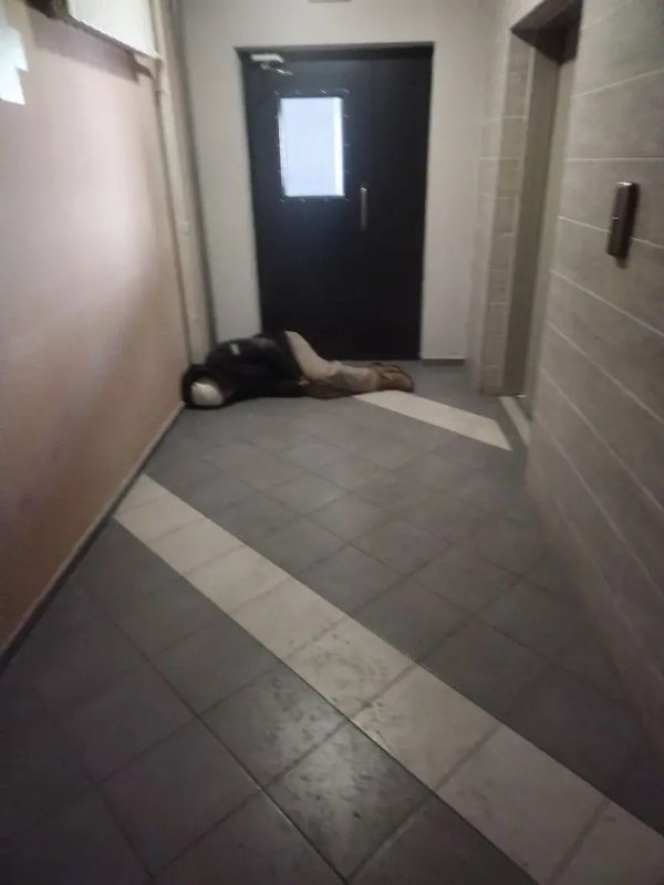 И, судя по всему, ситуация накалилась до предела на 17-м этаже одного из домов. Один из местных жителей обнаружил там «сюрприз» в виде брошенных грязных штанов и попытался выпроводить их владельца на улицу.