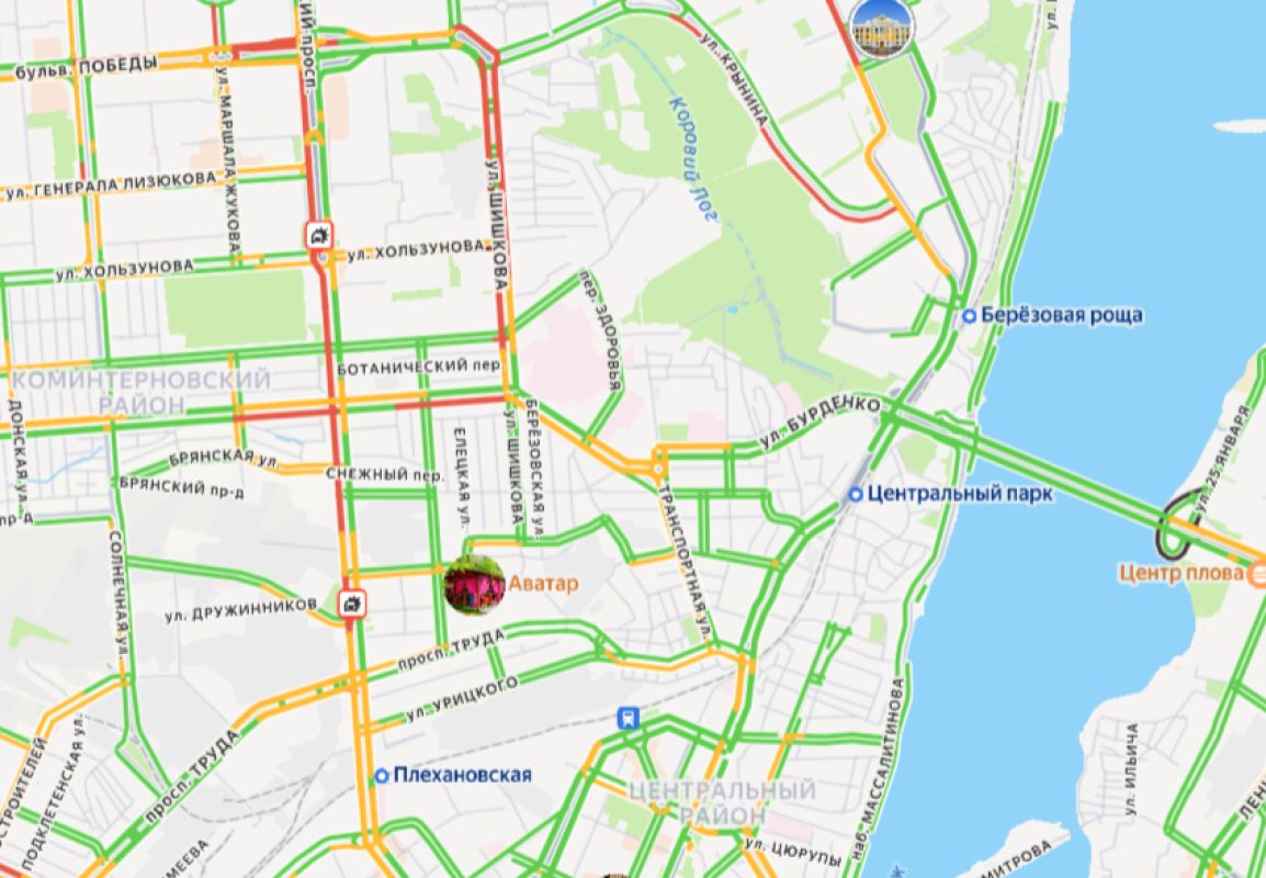 Длинная пробка растянулась в сторону центра Воронежа на Московском проспекте, если верить данным сервиса «Яндекс карты».