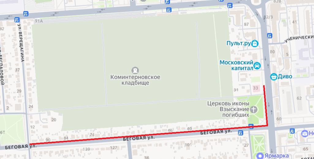 Речь идёт о дороге напротив Мемориального сквера. Припарковаться нельзя будет на участке от дома № 33 на Московском проспекте до пересечения с улицей Беговая, а также на самой Беговой от Московского проспекта до пересечения с улицей Верещагина.