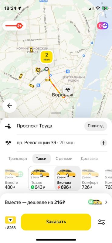 Цены на такси резко взлетели в Воронеже на фоне пробок