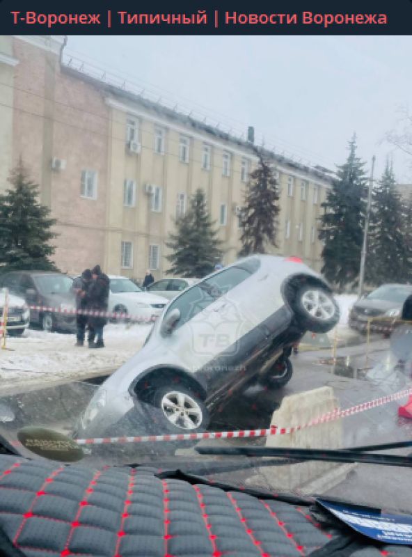 Грандиозный провал, в который угодила женщина-водитель, показали на фото в Воронеже