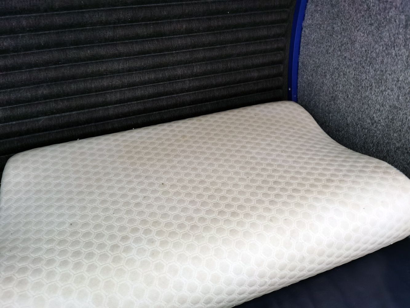 Внутреннее убранство моего номера оказалось следующим: подушка, матрас, розетка, кнопка... Всё. Подушка ортопедическая, с углублением в середине, вполне удобная и мягкая. Матрас тоже сносный. Места в капсуле достаточно: плечи о стенки не трутся. Но вот посидеть в номере с закрытой крышкой не удастся — в таком виде высота здесь чуть больше, чем у верхней полки в плацкарте.