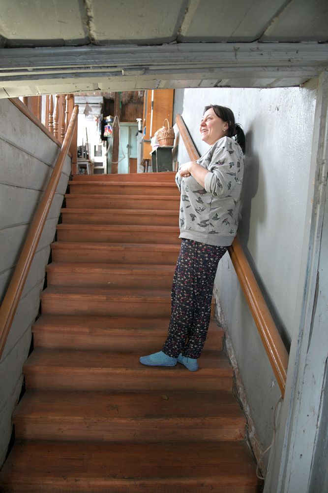 Вслед за Еленой поднимаемся по родной деревянной лестнице. Тут почти всё осталось от тех далёких лет — стены, двери, крыша...