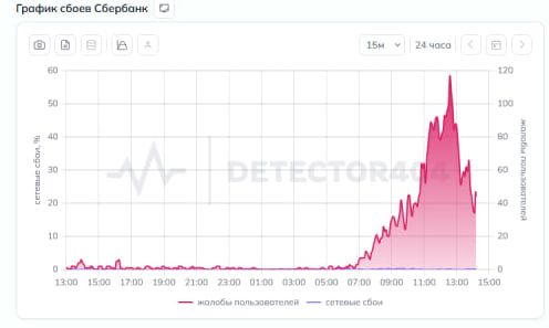 Пользователи приложения «Сбербанк Онлайн» массово жалуются на сбои в работе. Статистику жалоб опубликовали на сайте детектора сбоев сегодня, 13 апреля.