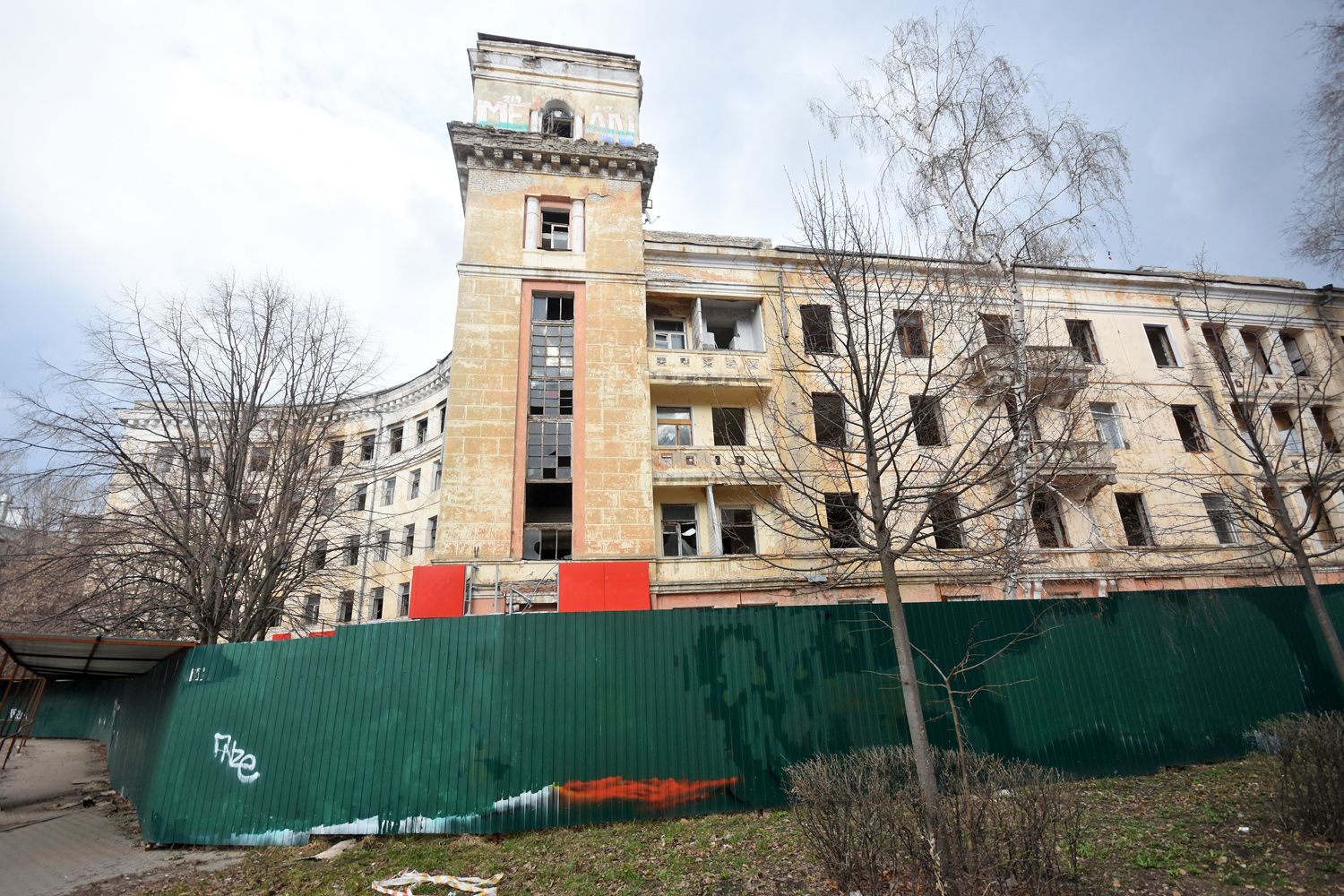 Наше внимание к архитектурному ансамблю на улице Депутатской привлекли жители центра города ещё в 2021 году. В то время одно из двух полукруглых зданий, в котором располагались квартиры (дом №11), воронежские власти капитально отремонтировали. А второй (№7 — там были коммуналки) — расселили. Когда из дома выехали жильцы, туда пришли вандалы. Звон от пил, которыми они срезали весь металл в подъездах и брошенных квартирах, был слышен на всю округу. С просьбой спасти объект культурного наследия от разграбления жители улицы Депутатской и обратились в редакцию «МОЁ!» пять лет назад.