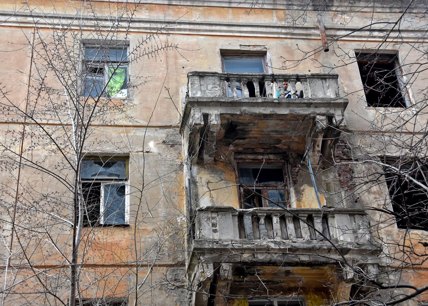 Впрочем, дом обитаем. Когда журналисты «МОЁ!» обходили его вокруг, на полуразрушенный балкон вышел мужчина в трениках и голубой футболке. Увидев нас, они присел на корточки и стал наблюдать из-за перил. Кто это, и как он туда попал, выяснить было не у кого — калитка для входа на территорию оказалась запертой.